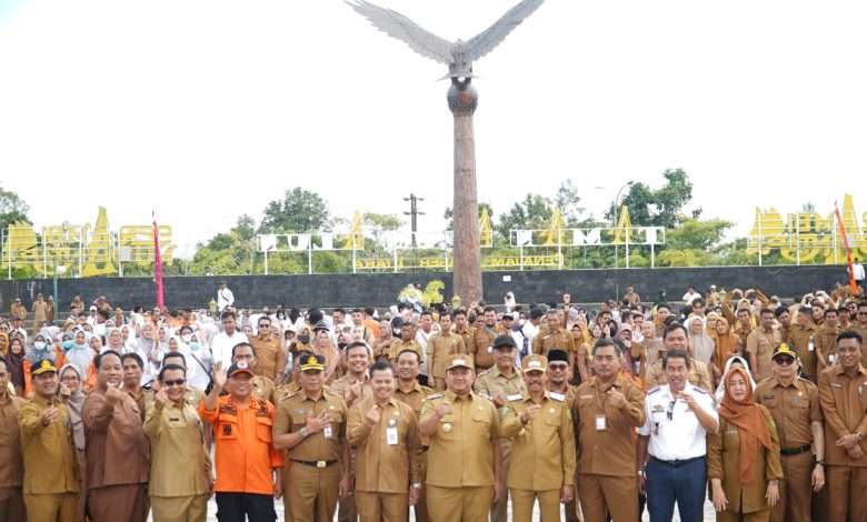 Timur Media, Penajam – Bupati Penajam Paser Utara (PPU), Mudyat Noor pimpin apel pagi gabungan yang diikuti seluruh Organisasi Perangkat Daerah (OPD) di lingkungan Pemkab PPU, Senin, (3/3/2025) di halaman depan Kantor Bupati PPU, Kilometer 09 Nipah-nipah.
