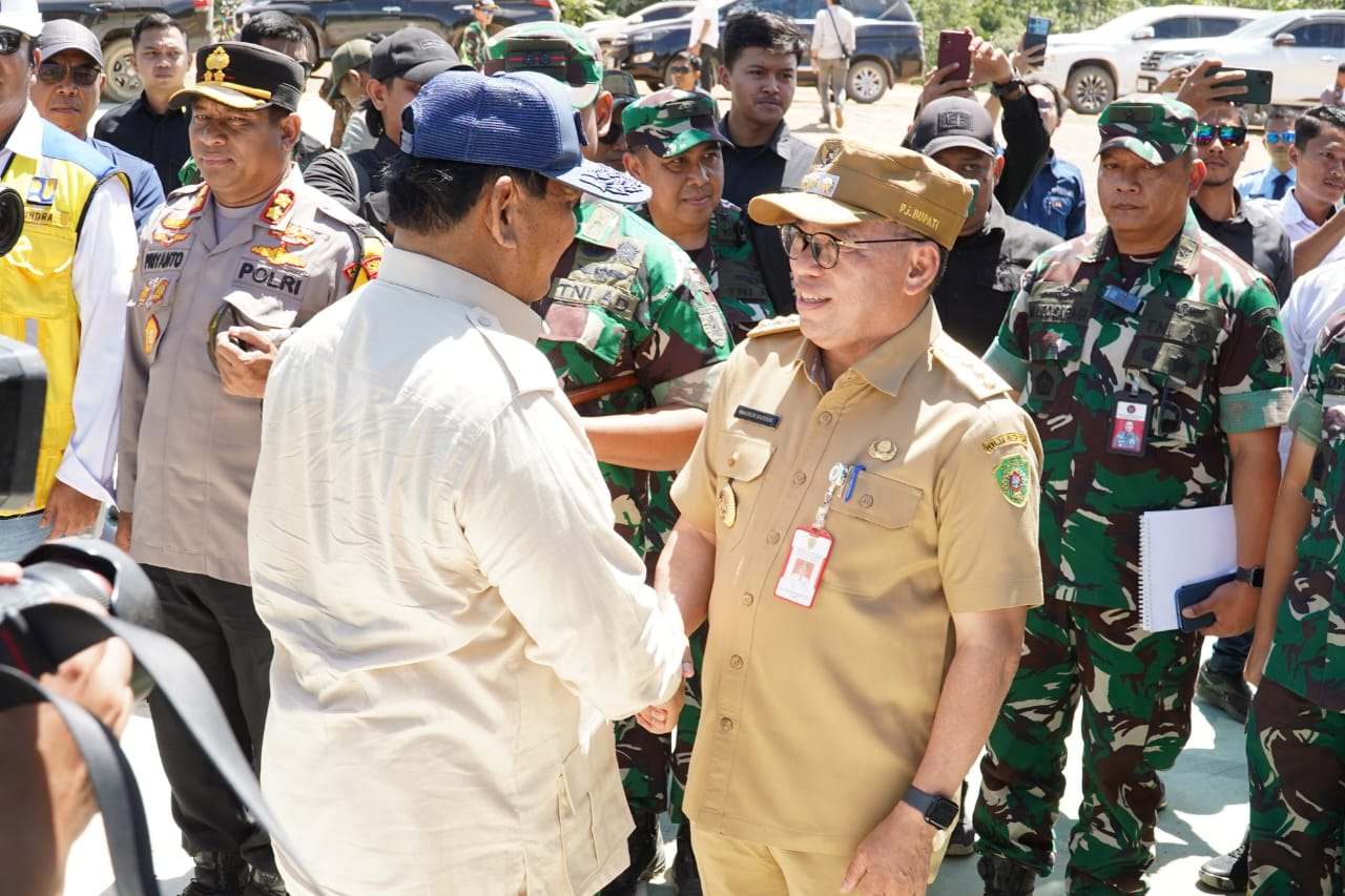 Timur Media, Penajam – Penjabat (Pj) Bupati Penajam Paser Utara (PPU) Makmur Marbun mendampingi langsung Menteri Pertahanan (Menhan) Republik Indonesia Prabowo Subianto dan jajarannya, saat melakukan kunjungan kerja (kunker) ke lokasi pembangunan Ibu Kota Nusantara (IKN) di Kabupaten PPU, Kalimantan Timur (Kaltim) Senin, (18/3/2024) siang.