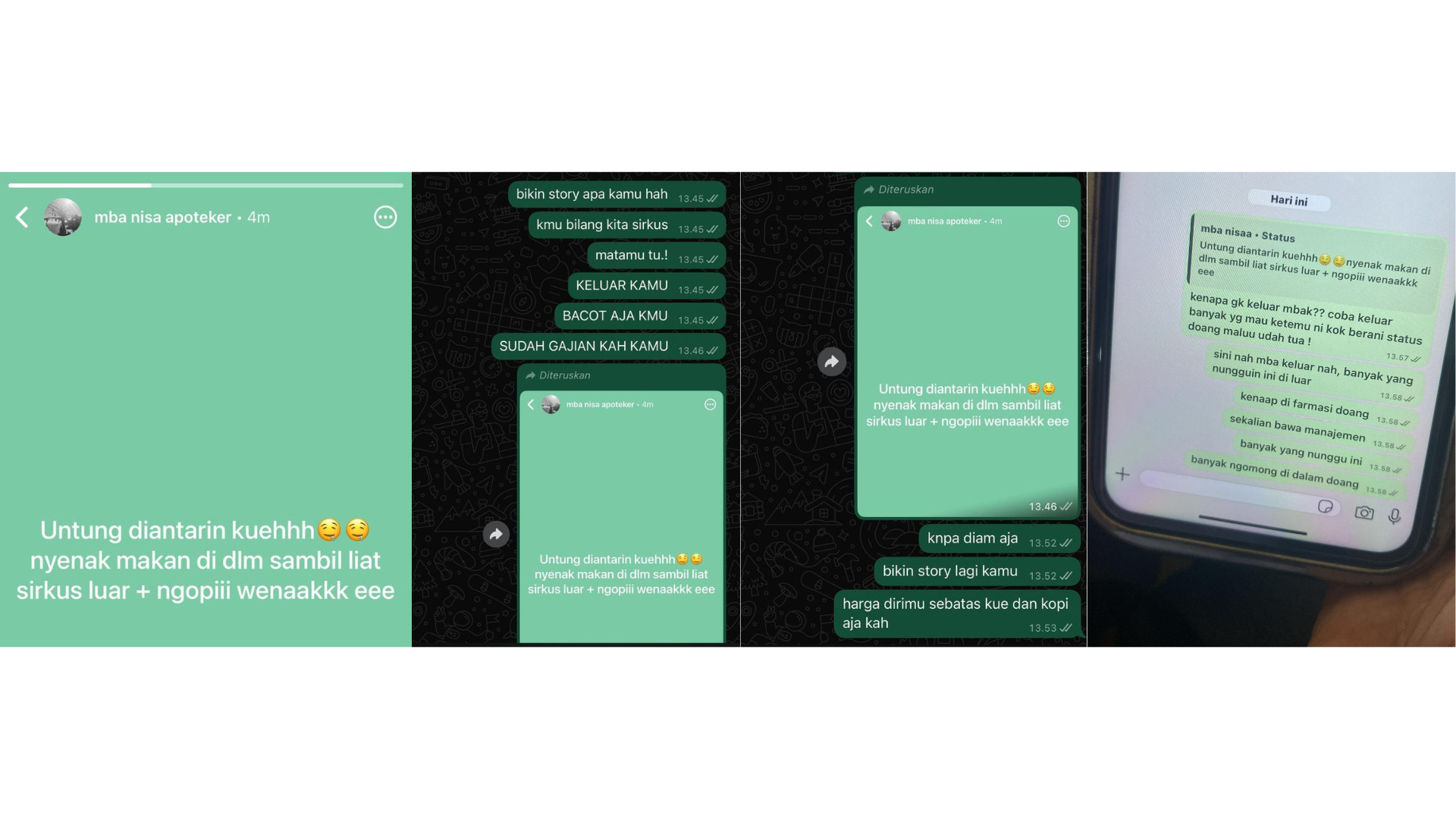 Suasana panas di lokasi tersebut ternyata belum mereda setelahnya. Beberapa menit kemudian, salah satu staf manajemen bernama Fitrianisa, diduga memprovokasi karyawan dan mantan karyawan dengan sebutan “Sirkus”. Hal itu diketahui saat mereka melihat update status karyawan yang menjabat sebagai Supervisi Divisi Farmasi tersebut. “Untung diantarin kuehhh nyanyak makan di dlm sambal liat sirkus luar + ngopiii wenaakkk eee,” tulis Fitrianisa.